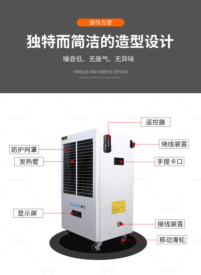 本产品是我公司广泛吸取国内外多种暖风机产品的成功经验,精心研制而成的,能使您的居室温暖,舒适。便携式空气暖风机可根据适用场所不同进行划分,适用于大型结构工程、建筑工地、道路维修、停车场,以及房屋完工工程、公寓和公共设施。它们启动的及时性和使用的随时性是其优势所在,而且还能省去安装其他高费用设备的麻烦。