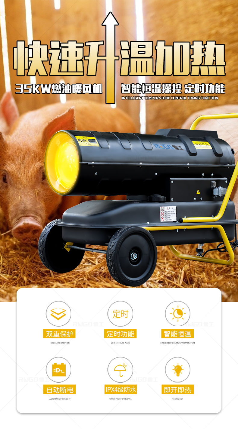30KW燃油暖风机适用于工厂车间,物资仓库,防潮烘干,局部采暖 建筑工地,道路桥梁,水泥养护,野外采暖 石油钻井,煤炭矿区,除冰防冻,设备保温 铁路机场,游艇船舶,油漆干燥等等...