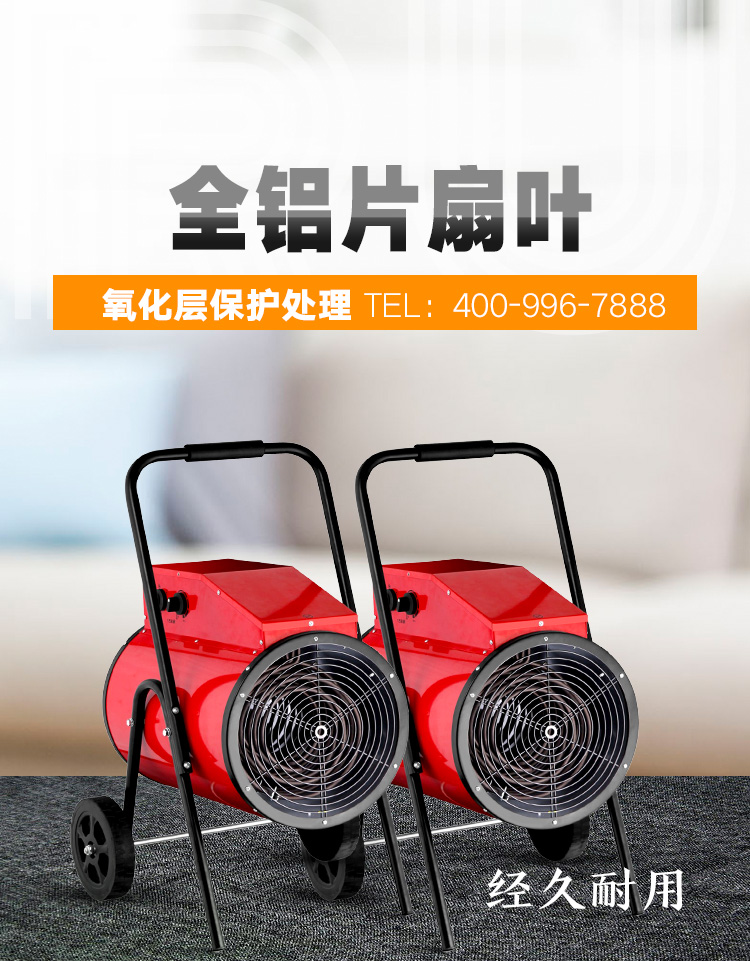 3.过热保护装置 全金属外壳绝缘处理,使用更安全,自由站立和移动式;